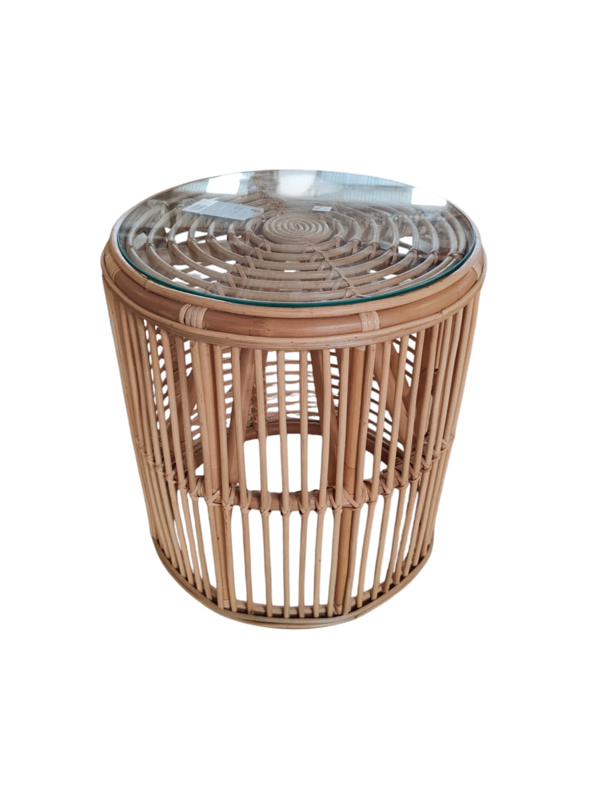 MESITA REDONDA DE RATAN NATURAL CON VIDRIO