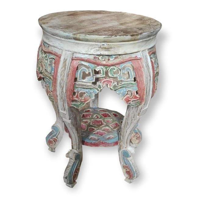 Stool Redondo Tallada Pita Lisa Wash 50Cm